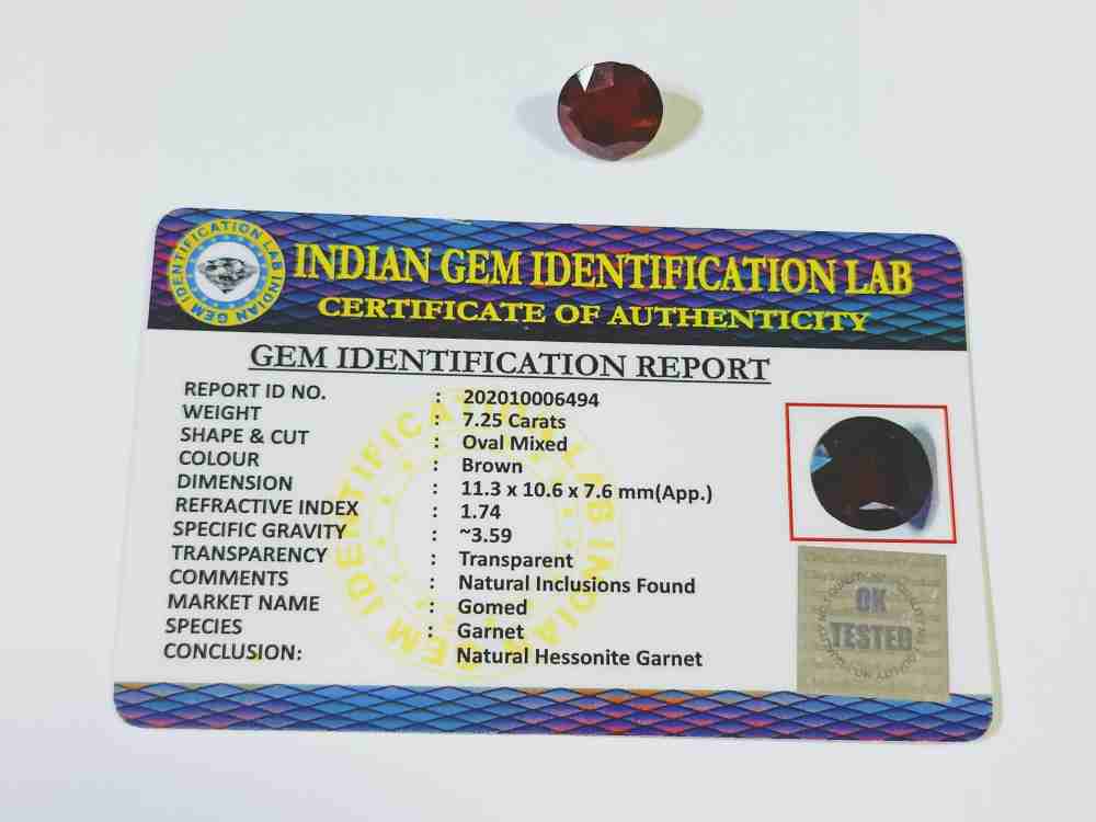 Certified Gomed (Hessonite) Stone & Mantrit (Energized) 7.25 Carat