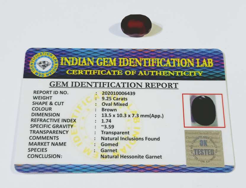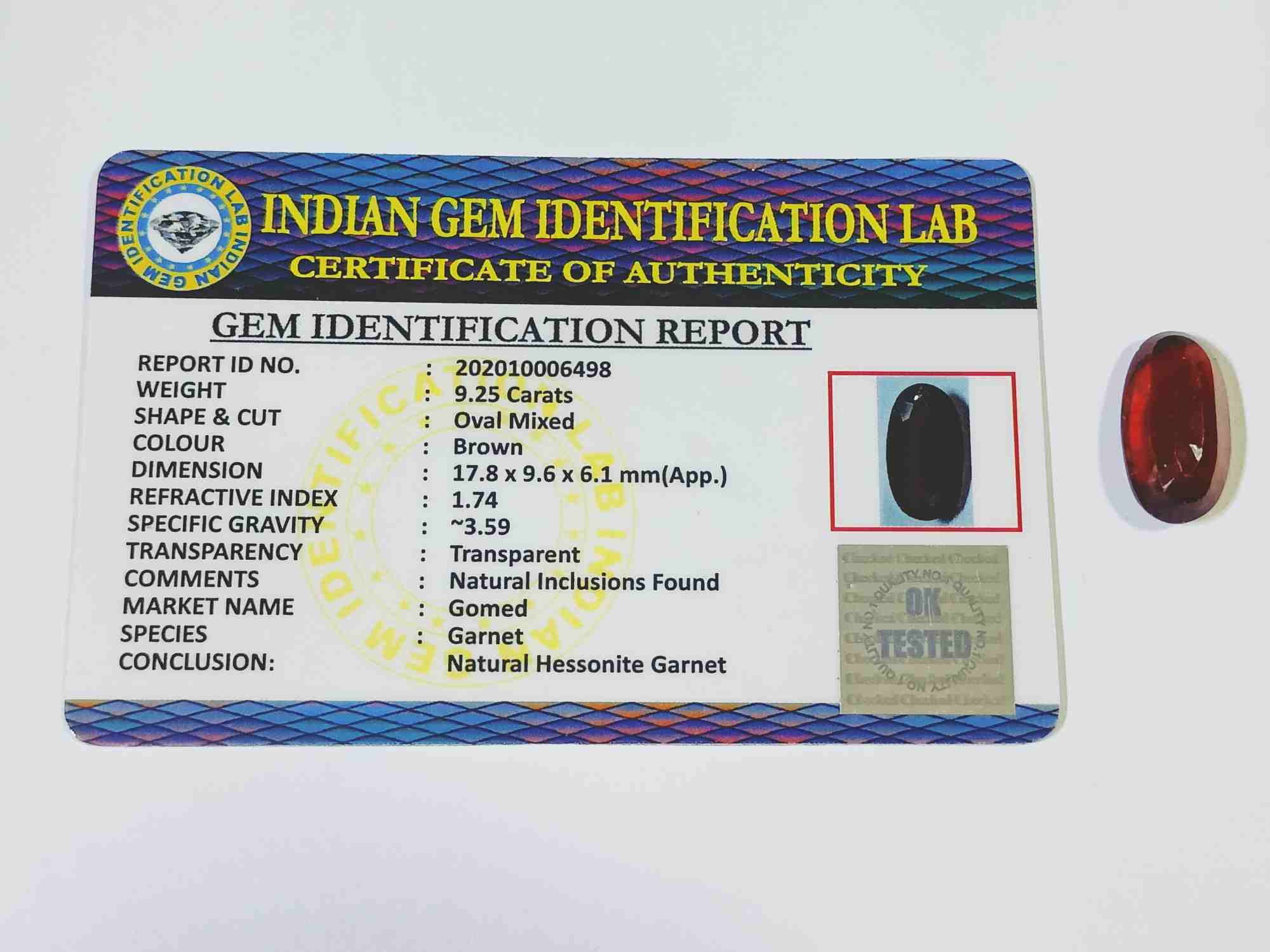 Certified Gomed (Hessonite) Stone & Mantrit (Energized) 9.25 Carat