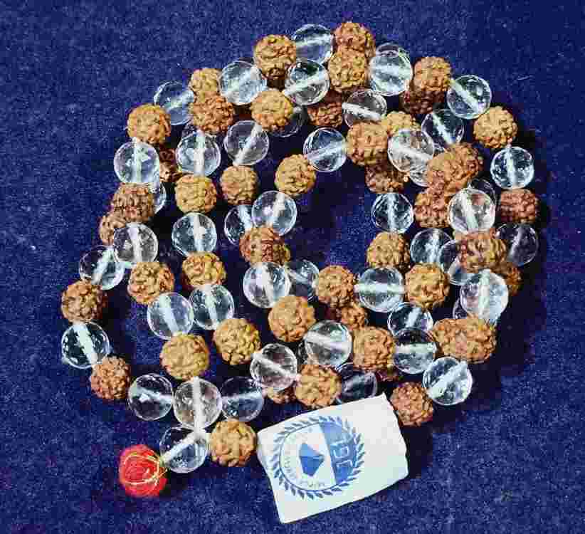 Certified 5 Mukhi Rudraksha with Sphatik Mala in Diamond Cut 108 Bead