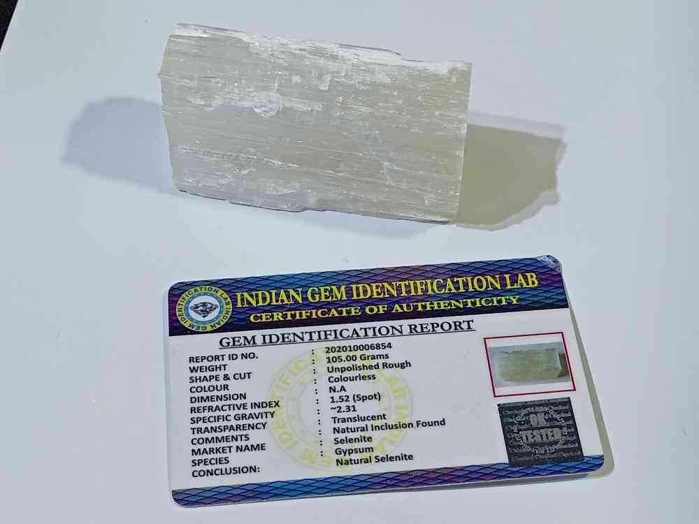 Lab- Certified Selenite Crystal Stone Original & Mantrit (Energized) 105 Gram