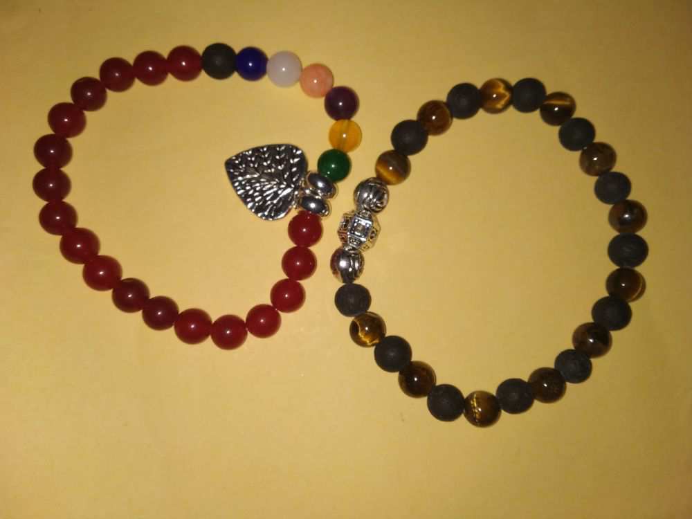 Mantrit (Energized) Bracelet 2 Pieces(Unisex) Metal Heart, Tiger Eye & Multicolour Stone