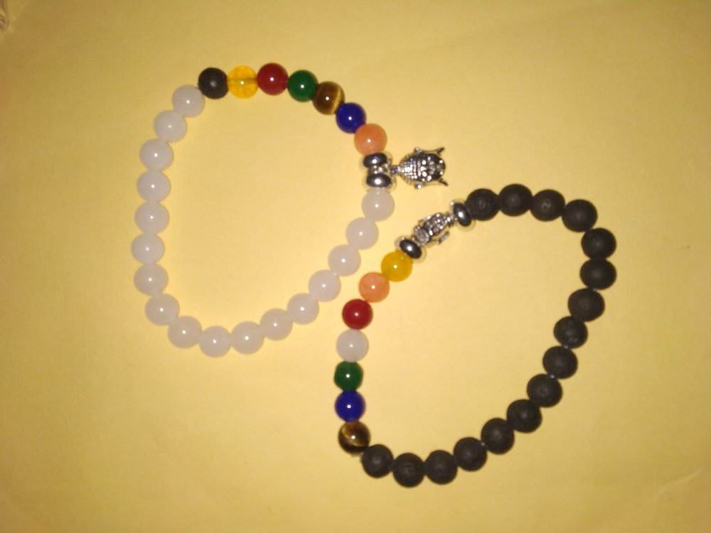 Mantrit (Energized) Bracelet 2 Pieces (Unisex) Metal Lord Buddh,Tiger Eye & Multicolour Stone