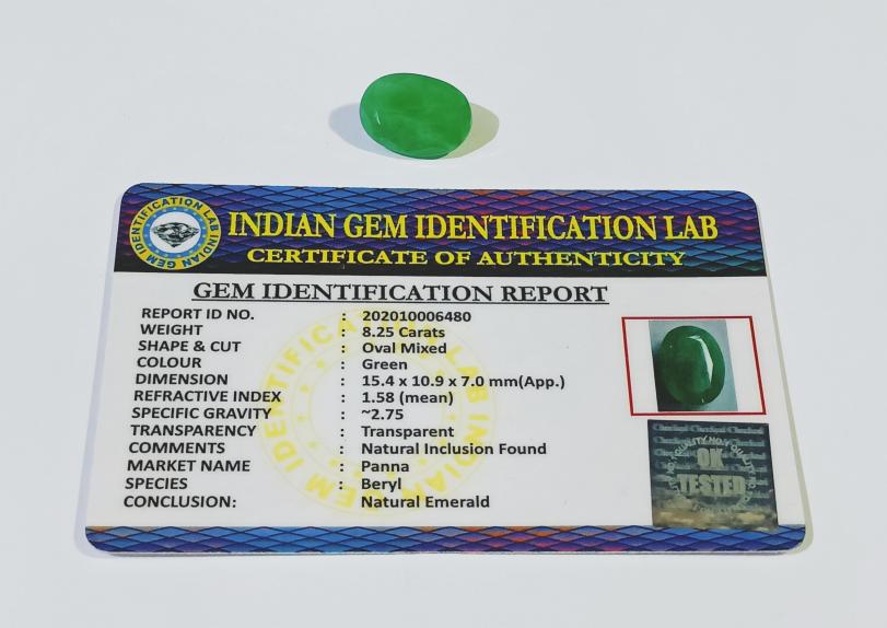 Certified Panna Stone (Emerald) & Original Gemstone- 8.20 Carat
