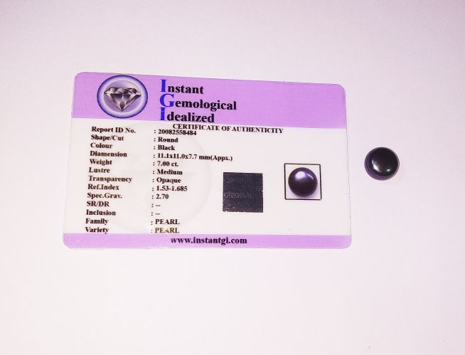 Lab- Certified Black Moti (Kaala Moti) Pearl Stone & Original- 7 Carat