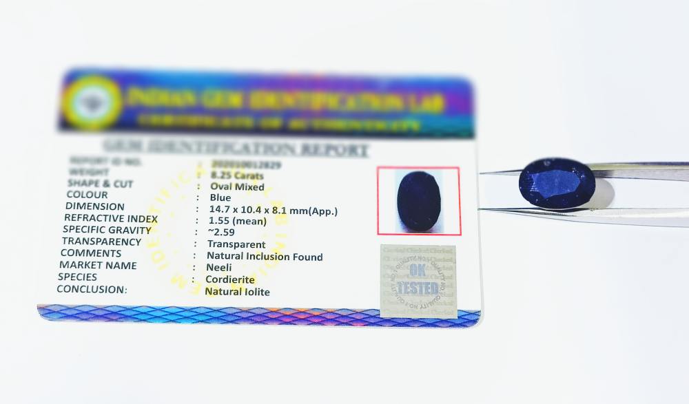 Mantrit (Energized) Iolite Violetish (Neeli) Blue Gemstone & Lab Certified – 7.10 Carat